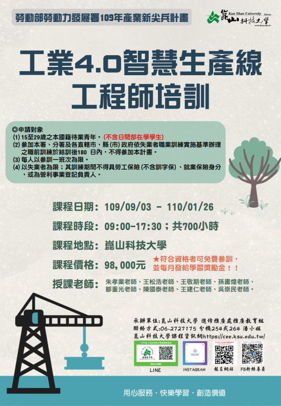 (二)「工業 4.0 智慧生產線工程師培訓」https://cee.ksu.edu.tw/CourseInfo.aspx?id=2051 。
