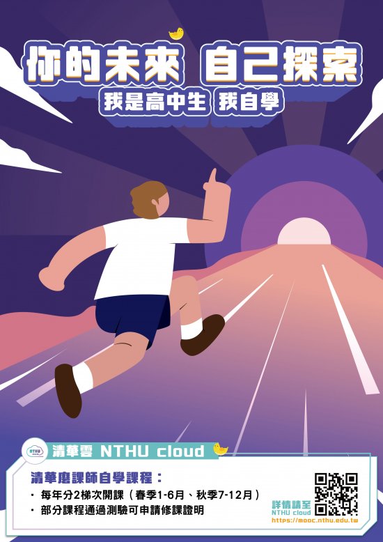 (二)課程時間: 110 年 8 月 1 日起至 12 月 31 日,詳情請至清華雲平台查詢,課程網址: https://mooc.nthu.edu.tw