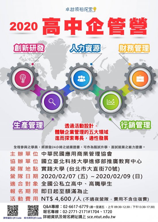 (三)高中企管營: 2020 年 2 月 7 日-2 月 9 日。