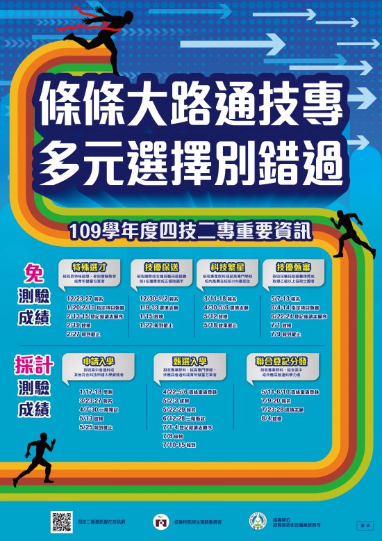 二、 109 學年度四技二專招生重要日程海報供學生升學參閱。