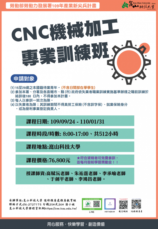 (五)「CNC 機械加工專業訓練班」https://cee.ksu.edu.tw/CourseInfo.aspx?id=2053