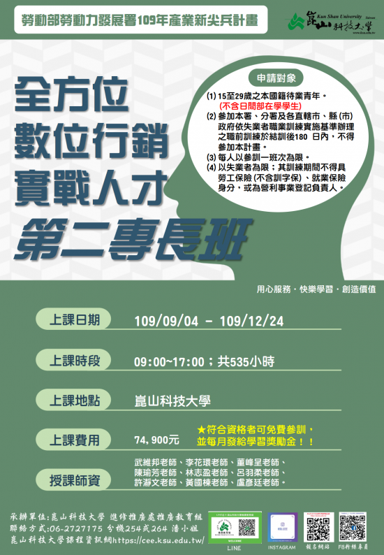 (三)「全方位數位行銷實戰人才第二專長班」https://cee.ksu.edu.tw/CourseInfo.aspx?id=2052