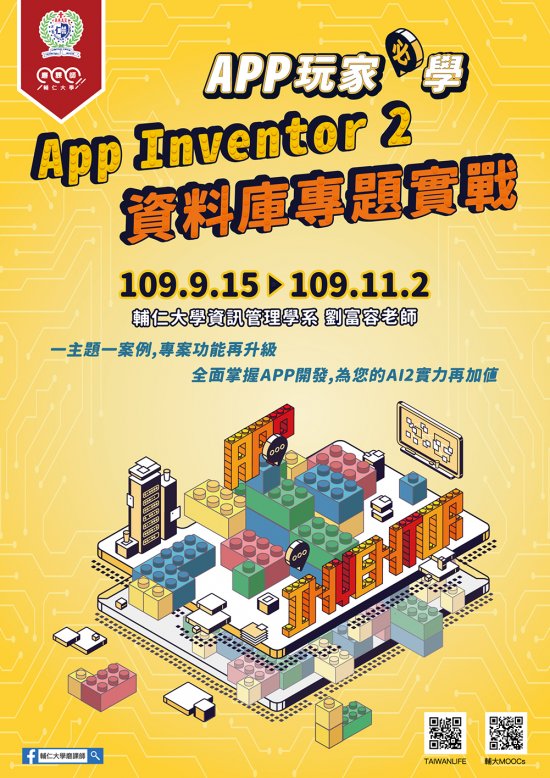 一、由本校資訊管理學系劉富容教授授課,全面掌握 APP 開發,為您的 AI2 實力再加值!課程以 AI2 專案方式教授 APP 程式開發技能,並著重使用者介面設計 UI 概念與使用者體驗 UX 探討,使學員能開發出功能完整、介面設計友善及使用經驗良好的應用程式。 二、開課期間: 109 年 9 月 15 日至 109 年 11 月 2 日止。 三、課程網址: https://reurl.cc/OqkrK9 。 四、修課方式:於平台註冊帳號後,即可報名課程進行免費線上修課。